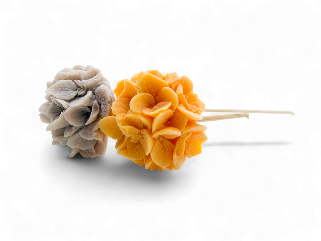 Bloom Duo is een set van twee bloemvormige kaarsen met verfijnde bloemblaadjes die elegantie en zachtheid uitstralen. De neutrale tinten zoals crème of wit maken dat ze moeiteloos passen in verschillende woonstijlen en gemakkelijk te combineren zijn met andere accessoires.