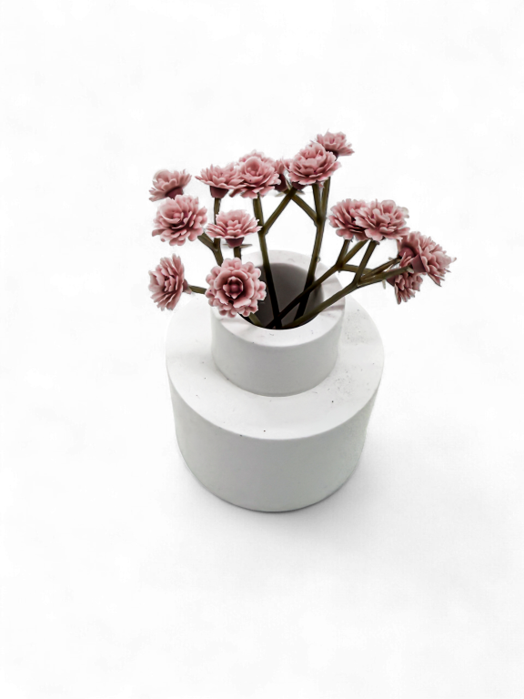 Minimalistisch, maar toch speels – dat is de Circle Steps Vaas! Met haar strakke, ronde vormen en moderne lagenstructuur is dit handgemaakte designstuk een echte blikvanger. Gemaakt van sterk tweecomponenten materiaal (vergelijkbaar met gips, maar veel steviger) en perfect voor een paar losse bloemen, droogtakken of gewoon als stijlvol decoratieobject.
