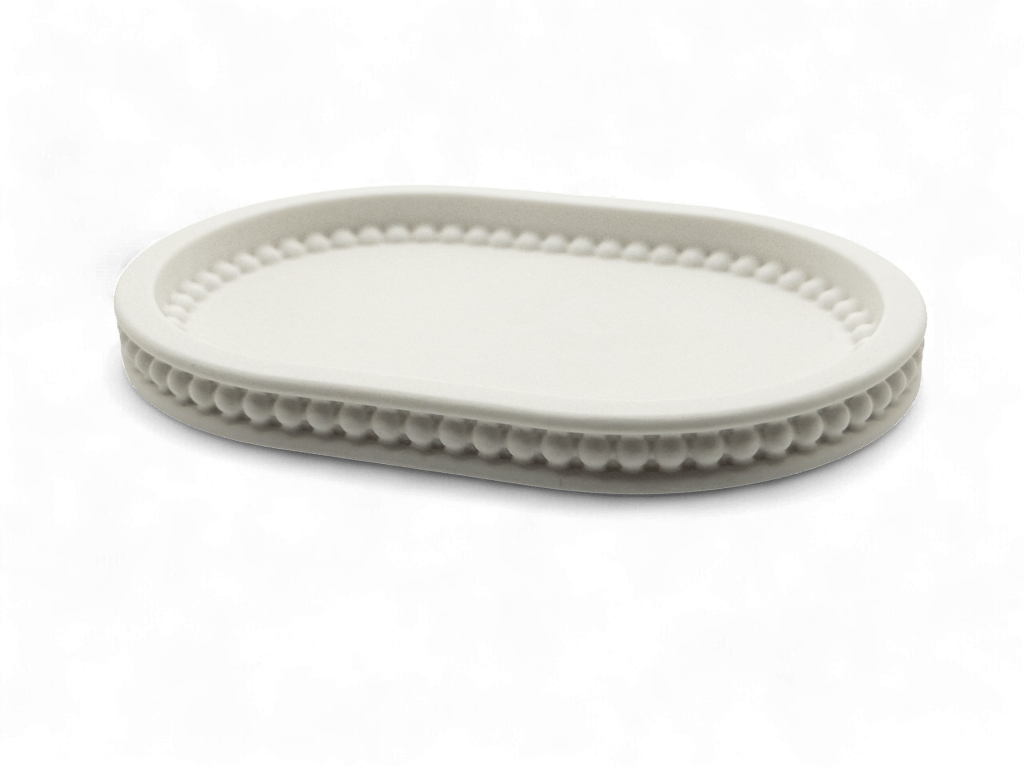 Een plateau met verfijnde details langs de rand die direct diepte en textuur toevoegen aan je styling. De matte afwerking en het stevige materiaal zorgen voor een rustige, hoogwaardige uitstraling die moeiteloos samengaat met moderne en klassieke interieurs. De subtiel verhoogde rand houdt kleine items mooi bij elkaar en laat het geheel verzorgd ogen, zonder druk te worden.
