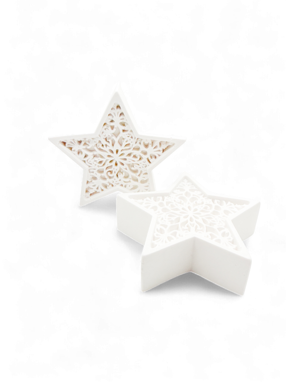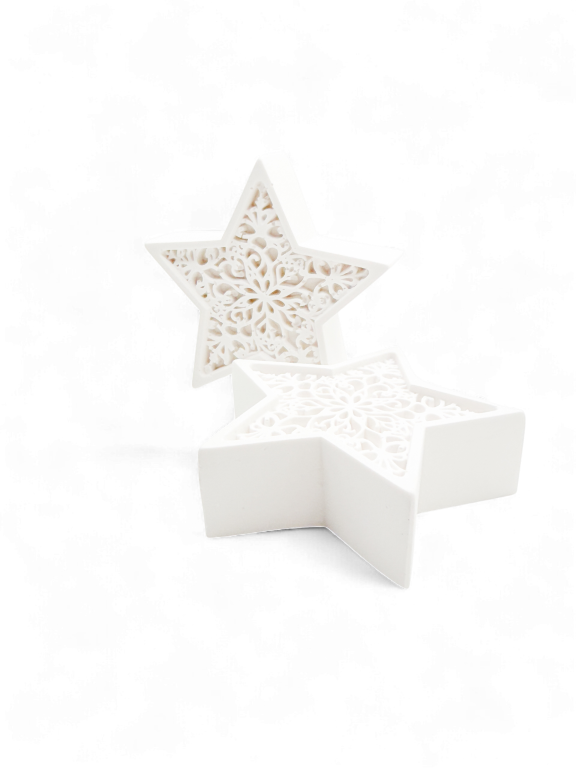 Plaats Star Duet samen op een sidetable, vensterbank of open plank voor een visueel statement, of verspreid ze voor een subtiele verbinding tussen verschillende delen van je kamer. Zelfs zonder omliggende decoratie tillen deze sterren de sfeer omhoog; perfect voor wie houdt van details met zachtheid en balans.