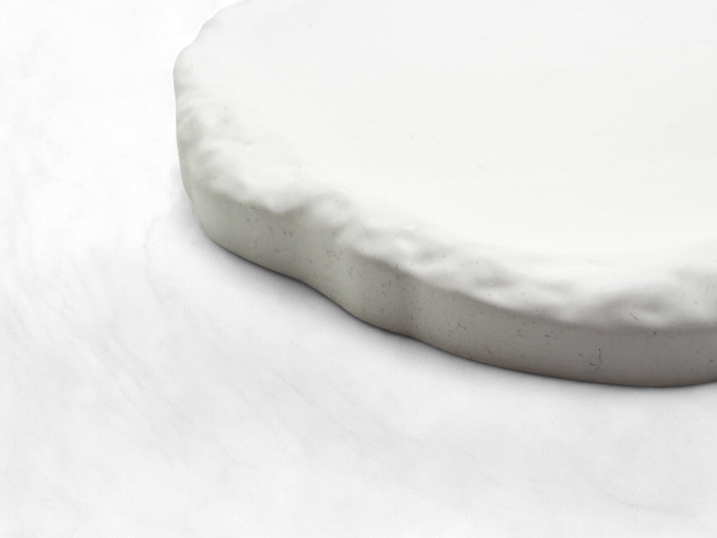 Cloud Stage is een plateau met zachte, golvende randen die doen denken aan de vormen van een wolk. De afwerking is egaal en in neutrale kleuren zoals wit, beige of lichtgrijs waardoor hij een rustgevende sfeer brengt.